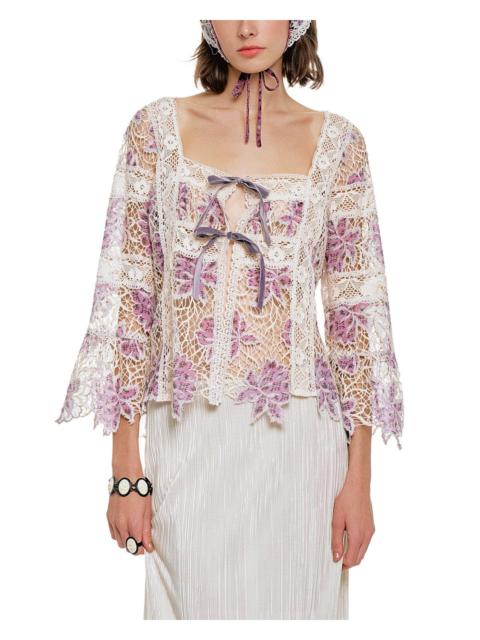 Anna Sui Medallion Floral Lace Tie Blouse in Mauve/cream at Nordstrom