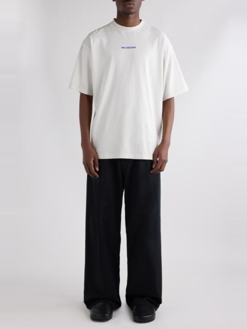 Balenciaga Medium Fit Distressed Logo T-Shirt in 8016 Dirty Wht/Sport Blue at Nordstrom