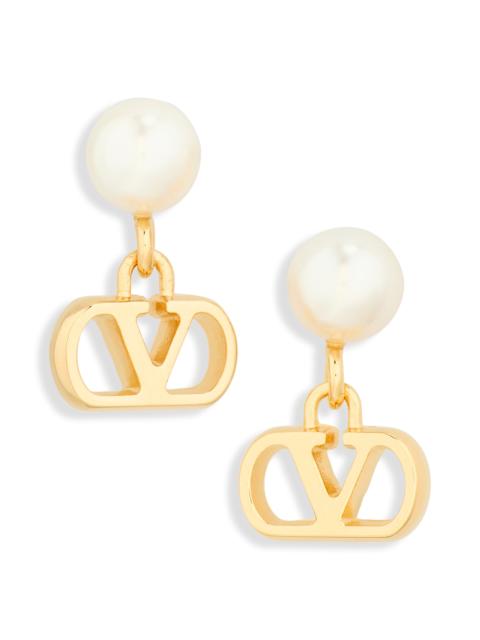 Valentino Garavani VLOGO Signature Drop Earrings in Gold/White at Nordstrom