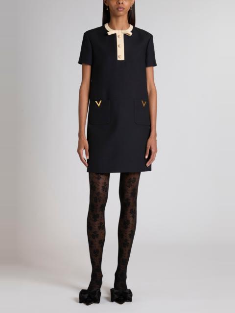Valentino V-Detail Crepe Couture Minidress in Black/Cream at Nordstrom