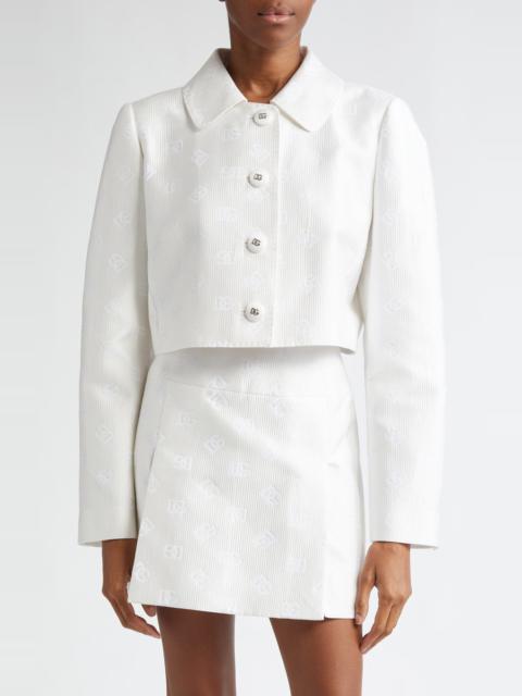 Dolce&Gabbana DG Logo Quilted Jacquard Crop Jacket in White at Nordstrom
