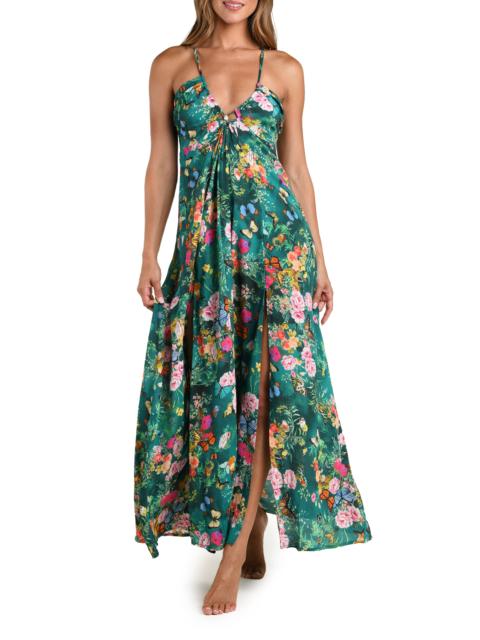 L'AGENCE Geneva Crepe Cover-Up Maxi Sundress in Green Multi at Nordstrom