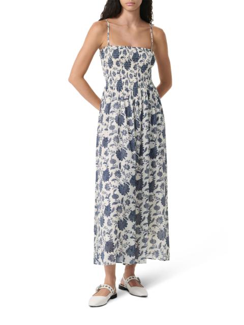 rag & bone Hallie Smocked Bodice Cotton & Silk Maxi Sundress in Cream Flora at Nordstrom