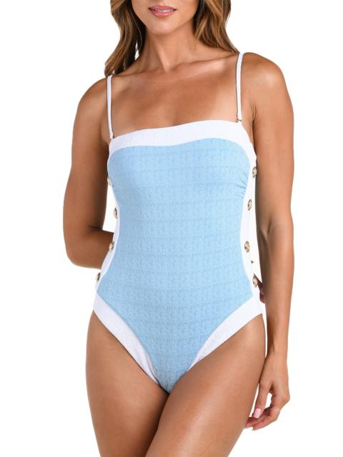 L'AGENCE Tory Colorblock One-Piece Swimsuit in Powder Blue at Nordstrom