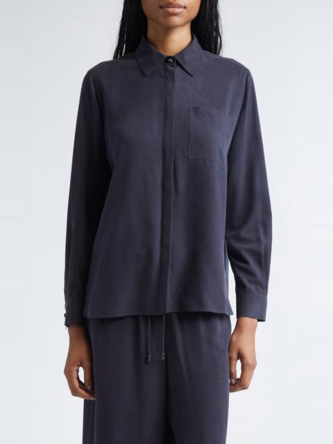Max Mara Silk Crêpe de Chine Button-Up Shirt in Ultramarine at Nordstrom