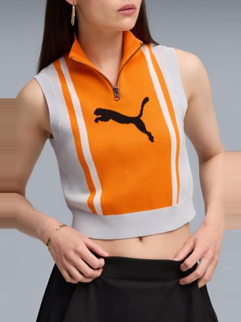 PUMA Future Archive Jacquard Sleeveless Half Zip Knit Crop Top in Silver Mist/Orange Glow at Nordstr