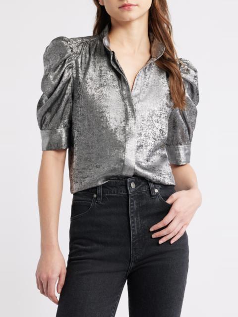 FRAME The Gillian Shiny Puff Sleeve Button-Up Shirt in Gunmetal at Nordstrom
