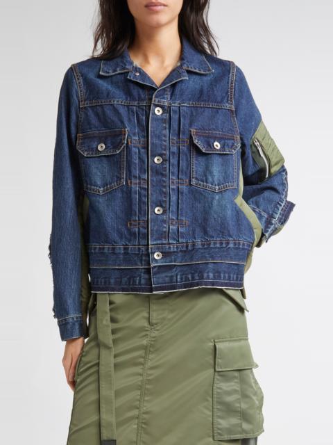 Sacai Denim & Nylon Twill Jacket in Blue 401 at Nordstrom