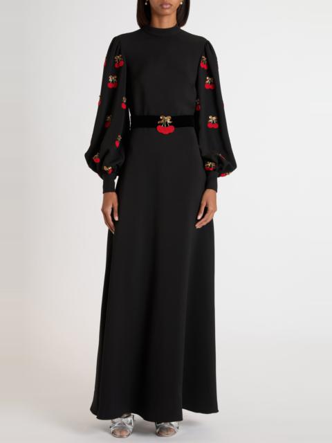 Valentino Garavani Cherryfic Beaded Long Sleeve Silk Gown in Black/Cherry at Nordstrom