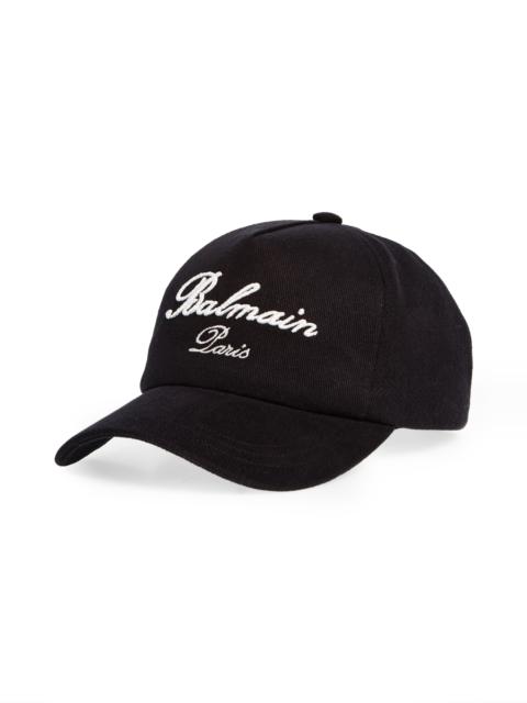 Balmain Signature Embroidered Cotton Baseball Cap in Edk Black/Ivory at Nordstrom