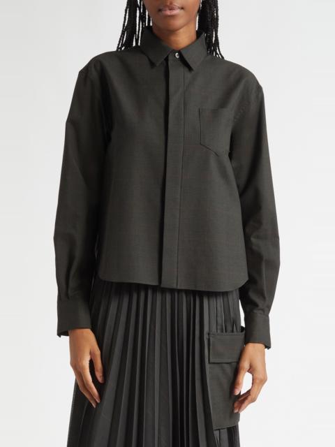 Sacai Glen Check Mixed Media Button-Up Shirt in Black/Khaki at Nordstrom