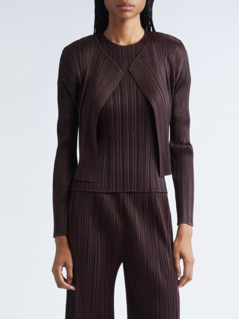 Pleats Please Issey Miyake Monthly Colors July Pleated Open Front Cardigan in Dark Brown at Nordstro