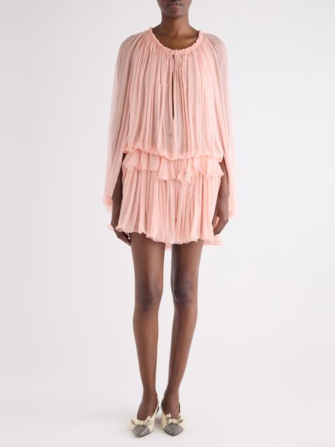Chloé Long Sleeve Organic Silk Muslin Cape Minidress in Tan Rose at Nordstrom