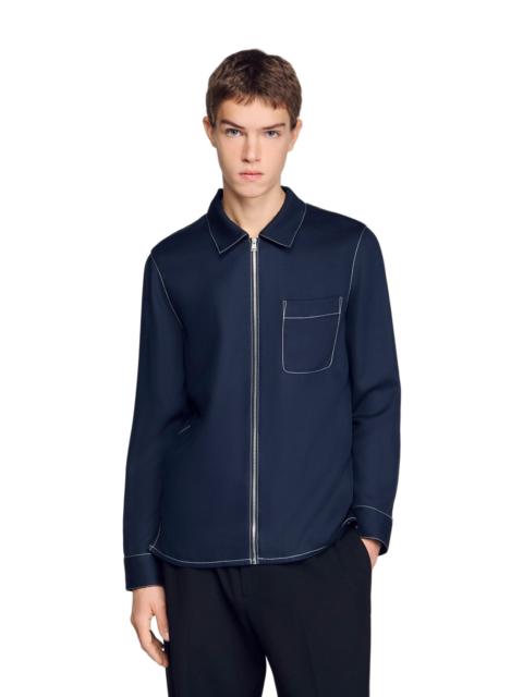 SANDRO Loose-fit zip-up shirt in Navy Blue at Nordstrom