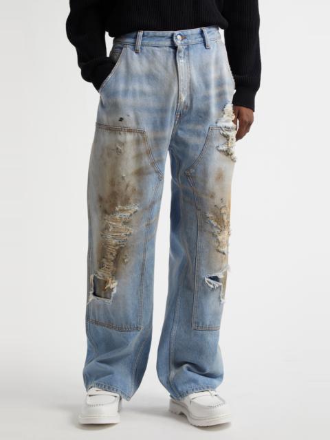 MM6 Maison Margiela Rip & Repair Straight Leg Jeans in Medium Blue at Nordstrom