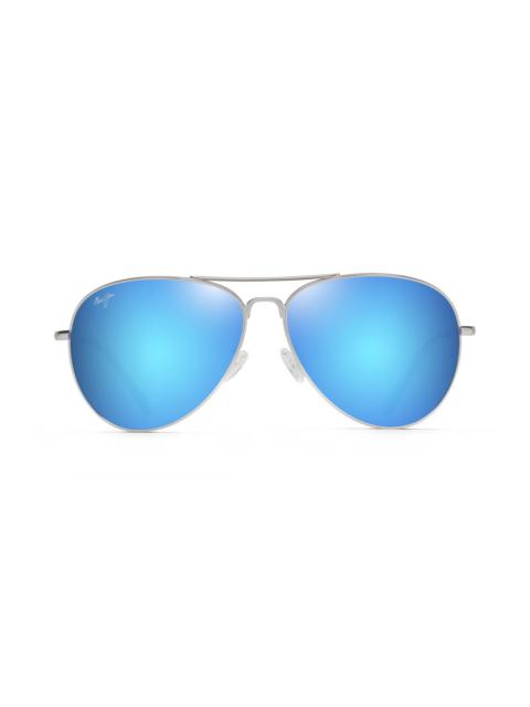 Maui Jim Mavericks 61mm Polarized Oversize Aviator Sunglasses in Silver/Blue Hawaii at Nordstrom
