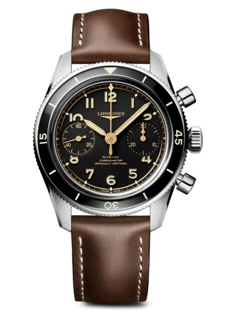 Longines Spirit Pilot Flyback Leather Strap Watch, 39.5mm in Black at Nordstrom
