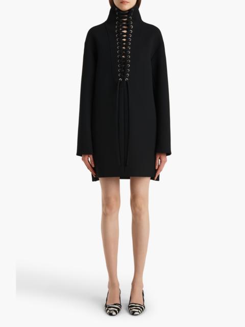 Khaite Lee Lace-Up Long Sleeve Double Face Crepe Dress in Black at Nordstrom