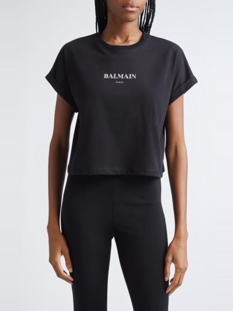 Balmain Logo Crop Graphic T-Shirt in Black/White at Nordstrom