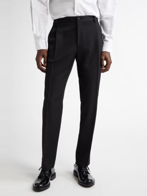Dolce&Gabbana Classic Wool Blend Gabardine Tuxedo Pants in N0000 Nero at Nordstrom
