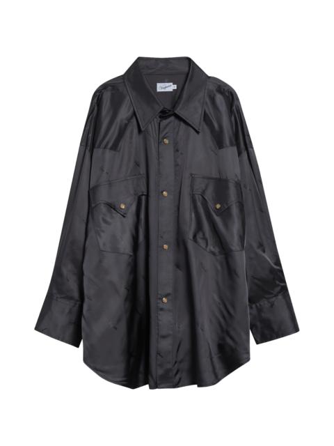 Vaquera Logo Jacquard Oversize Satin Western Shirt in Dark Grey at Nordstrom