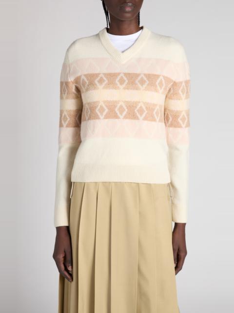 Moncler Jacquard Virgin Wool V-Neck Sweater in Silk White at Nordstrom