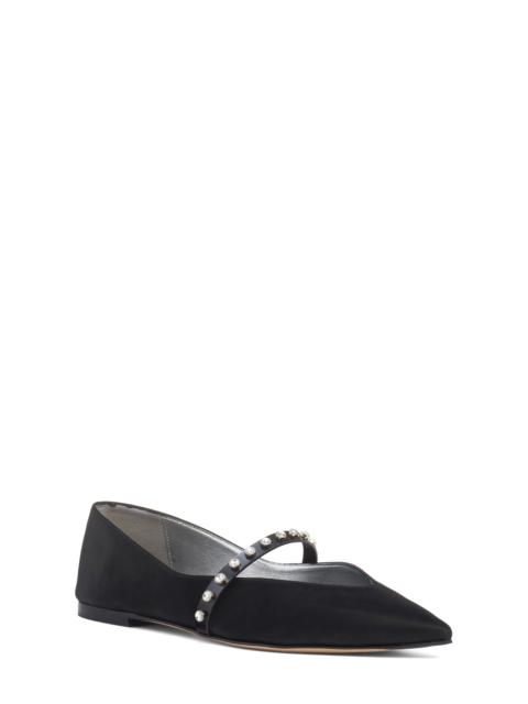 McQueen Crystal Embellished Pointed Toe Mary Jane Flat in Black/Black/Silver at Nordstrom
