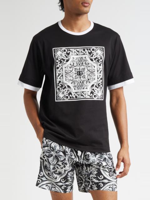 Dolce&Gabbana Majolica Embroidered Ringer T-Shirt in Nero at Nordstrom