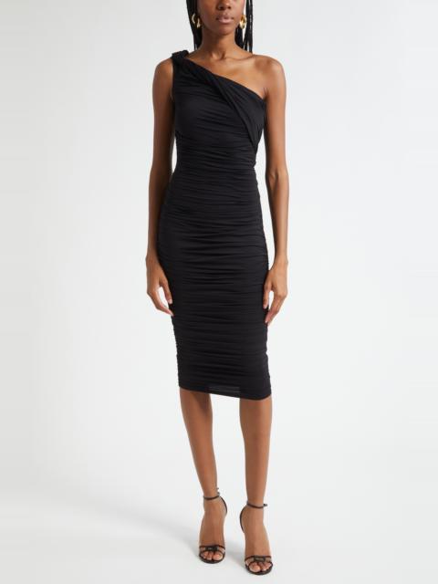 L'AGENCE Cheryl Shirred One-Shoulder Body-Con Midi Dress in Black at Nordstrom