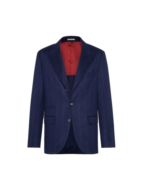 Brunello Cucinelli Wide chalk stripe deconstructed blazer in Avio Blue at Nordstrom