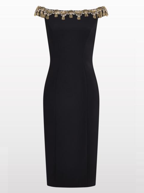 Jenny Packham Valorie Beaded Off-Shoulder Midi Dress in Liquorice at Nordstrom