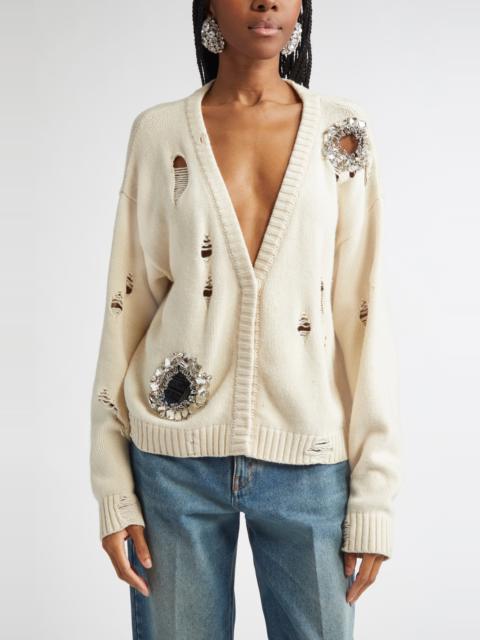 Area Distressed Crystal Cardigan in Cream at Nordstrom