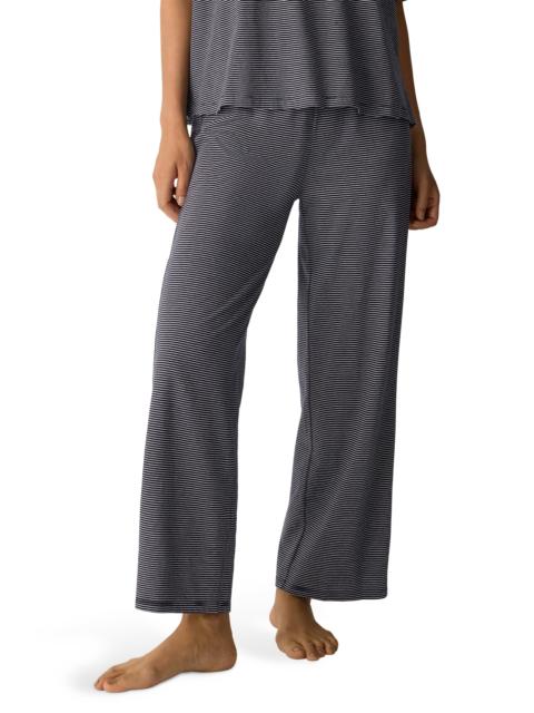 Eileen Fisher Stripe Organic Cotton Ankle Wide Leg Pull-On Pants in Ink at Nordstrom