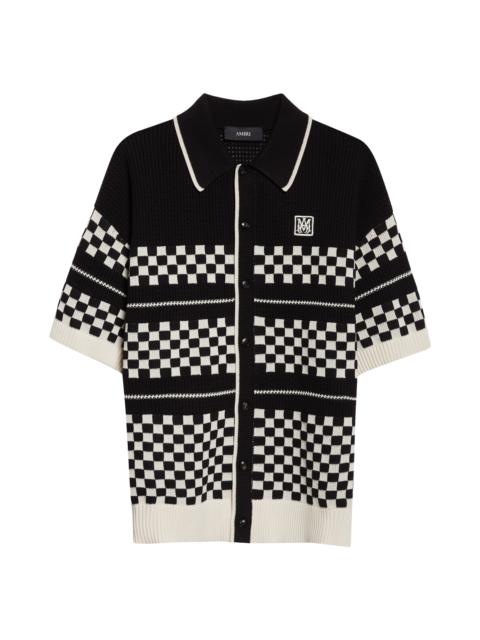 AMIRI Checkered Wool Mesh Shirt in Black at Nordstrom