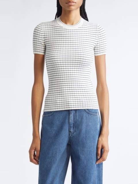 Emporio Armani Stripe Rib Crewneck Top in Solid White at Nordstrom