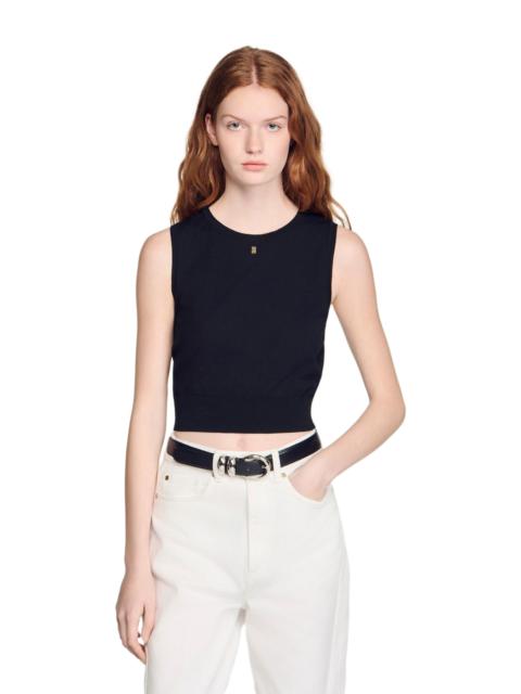SANDRO Sleeveless short knit sweater in Black at Nordstrom