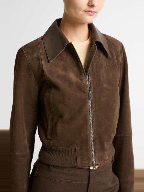 Vince Shrunken Suede Bomber Jacket in Willow at Nordstrom