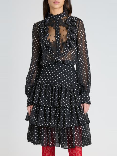 Valentino Garavani Polka Dot Tulle Bib Button-Up Shirt in Nero/Betulla at Nordstrom