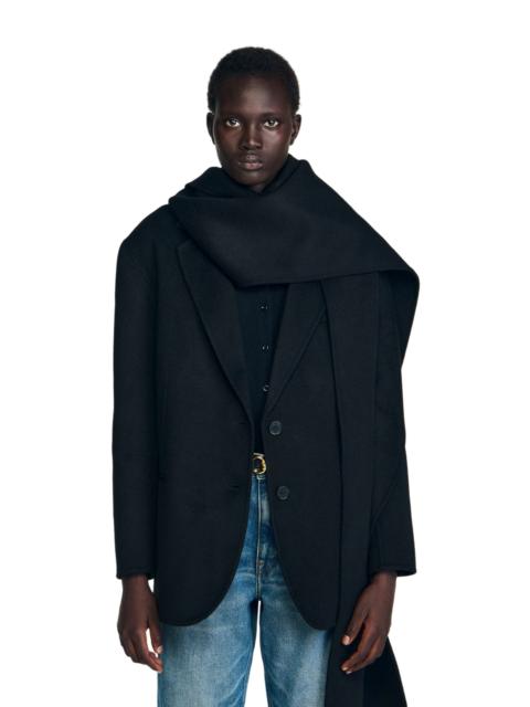 SANDRO Short coat with integrated scarf in Black at Nordstrom