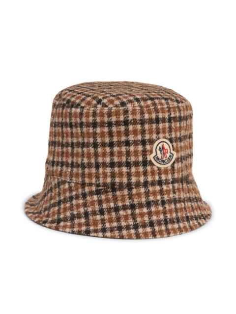 Moncler Reversible Check Logo Patch Bucket Hat in Brown/Beige Check at Nordstrom
