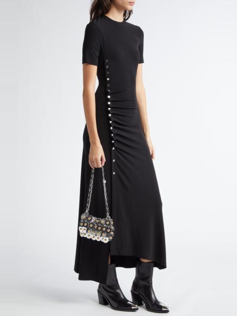 Rabanne Drapé Pression Short Sleeve Maxi Dress in Black at Nordstrom