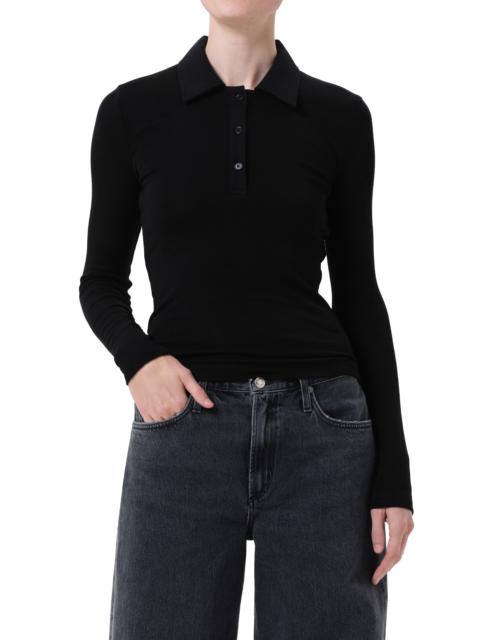AGOLDE Amos Long Sleeve Polo Shirt in Black at Nordstrom