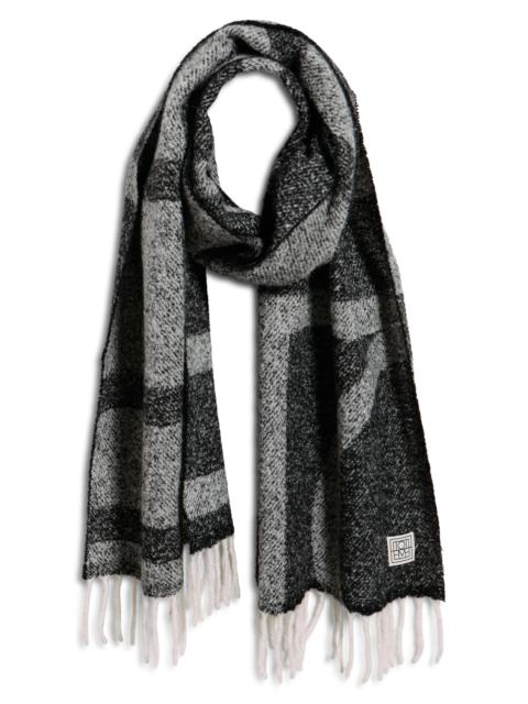 TOTEME Monogram Jacquard Alpaca Blend Fringe Scarf in Black/White at Nordstrom