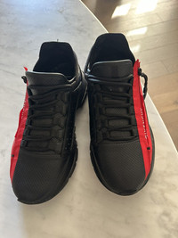 Gently worn, black with red strip.