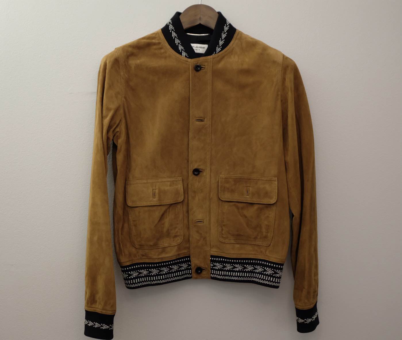 SAINT LAURENT SLP SS18 Whisky Suede IKAT Bomber Sz 46 VERY Gently Used Style ID 498386 YC2LW