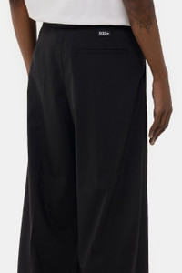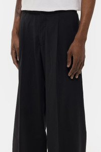 032c wide leg suit pants in black. Features 032c logo patch, breathable summer wool, single welt pockets, back darts, and pressed creases on the front and back of the legs. Fit - Regular fit - Men's sizing - Runs true to size for US men’s sizing Feature - Single welt pockets - 032C logo patch - Breathable summer wool - Back darts - Pressed creases on the front and back of the legs - Mid rise Fabrication - Material: 54% Polyester | 44% Wool | 2% Elastane - Made in Lithuania SKU: S25-MRW-0903-000-48