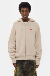424 zip up hoodie in "Tea" tan. Features relaxed fit, drawstring hood, and red logo embroidery on chest. Fit - Men's relaxed fit Feature - Relaxed fit Fabrication - Material: 100% cotton SKU: FF5SMF02AP-JE203.066-S
