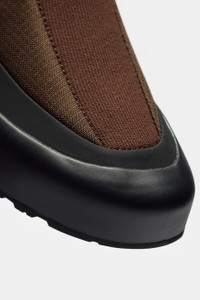 Arc'teryx men’s standard fit "Carob" and black mesh knit mid top sneaker. Fit - Fits true to size - US Men’s sizing Feature - Breathable PrimaLoft insulates the upper and footbed - Ripstop upper - Odour-fighting antimicrobial sock liner - Rubber toe cap - Sidewall protection - Vibram Megagrip outsole Fabrication - Style # L08200400-X000009205 - Weight (1/2 pair) 330g / 12oz SKU: L08200400-X000009205-85