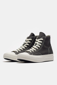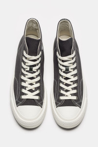 Converse unisex standard fit “Beluga", black, and "Marshmallow" canvas retro high top basketball sneaker. Features a platformed rubber sole, Vibram outsole, and signature Chuck Taylor 70's stitching. Fit - Standard fit - US men's sizing - Buy 1.5 sizes down for US women's sizing Feature - Lace-up front - Canvas upper - Rounded toe - Rubber overlay - Logo ankle patch - High rubber foxing - Stacked platform rubber sole - Stitching details - Interior heel counter Fabrication - Style # A14280C - Made in Vietnam SKU: A14280C-6