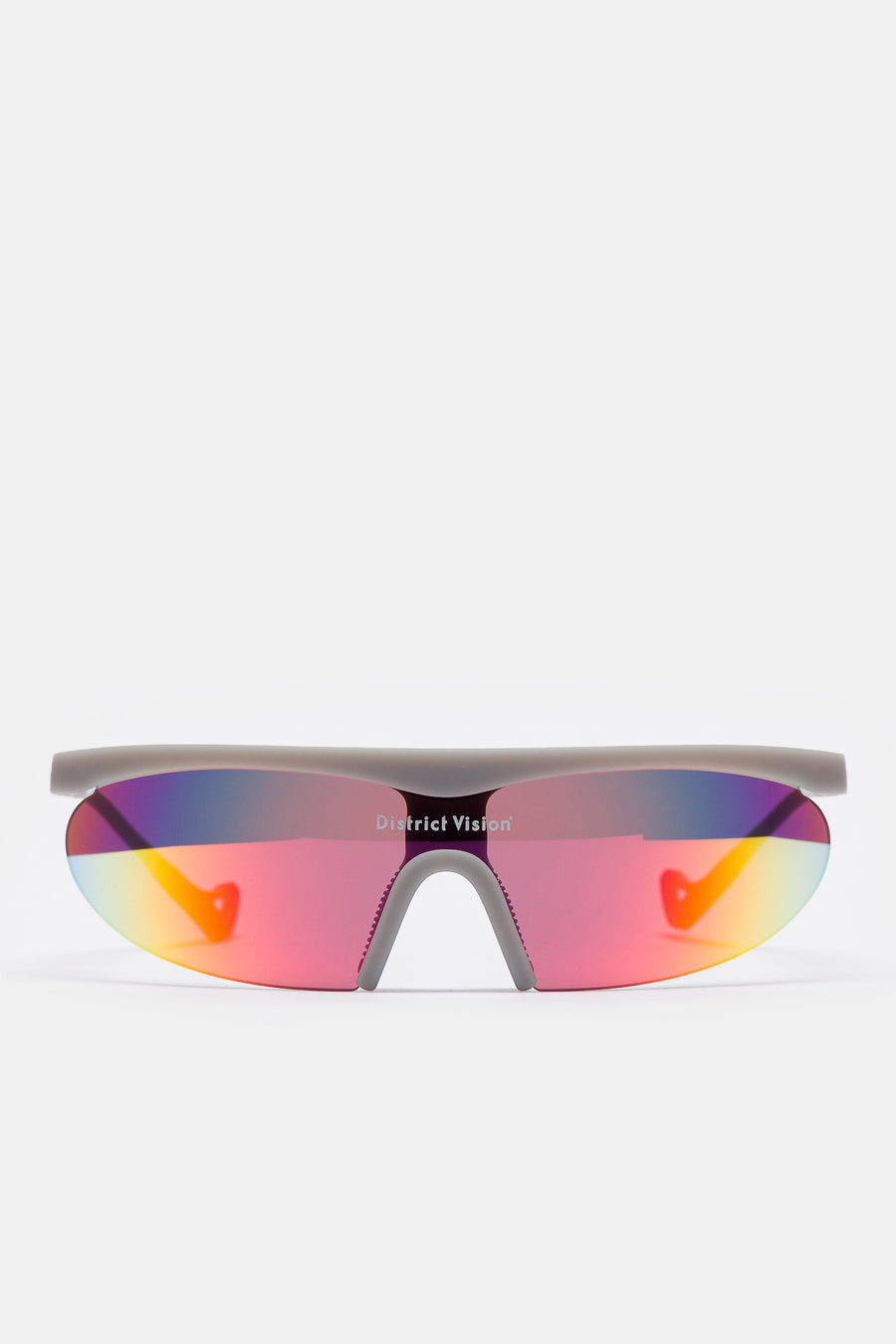 District Vision sunglasses in carbon and UV protected mirror lens. Feature mirrored lenses, a printed logotype, and wrap around style frame. Feature - TR90 nylon injected frame - Logotype printed on lens - Beta titanium armature and hardware - D+ therauputc lenses Fabrication - Handmade in Japan SKU: DVG005-CARBONSPEC-OS